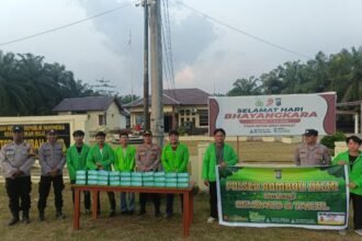 Raih Berkah Ramadhan, Polres Rohul dan Mahasiswa Tebar Kepedulian dengan Membagikan Sembako dan Takjil