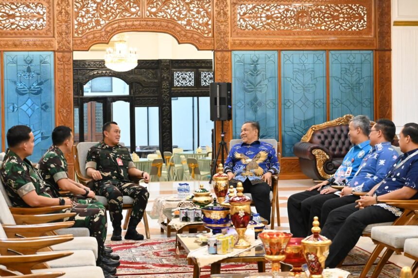 PEKANBARU – Penerangan Lanud Rsn. Dalam momentum Hari Raya Idul Fitri 1447 H/2026 M, Komandan Lanud Roesmin Nurjadin Marsma TNI Abdul Haris, M.M.Pol., M.M.O.A.S., melaksanakan silaturahmi dengan PLT. Gubernur Riau Ir. H. S.F. Hariyanto, M.T., Kamis (26/3/2026), bertempat di kediaman PLT. Gubernur Riau di Jalan Sisingamangaraja, Kota Pekanbaru.