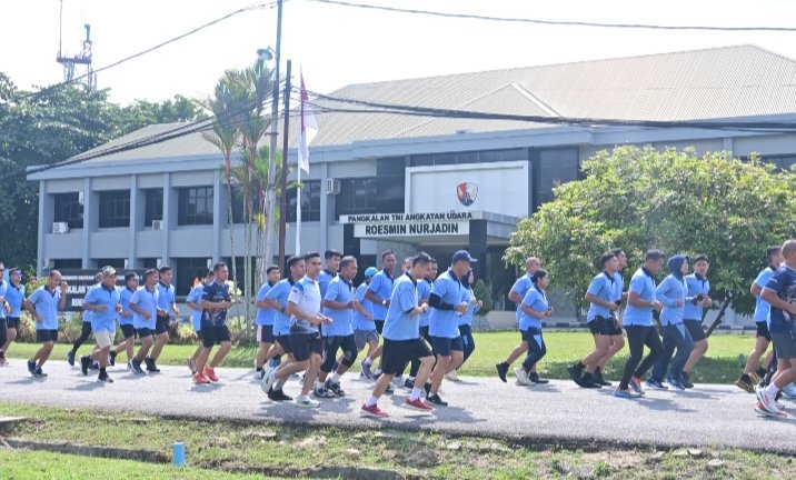 Selanjutnya, kegiatan dilanjutkan dengan lari mengelilingi area perkantoran Lanud Roesmin Nurjadin sebagai bagian dari latihan daya tahan tubuh. Untuk menjaga kondisi fisik tetap optimal, rangkaian latihan ditutup dengan gerakan senam pelemasan otot guna mengembalikan kebugaran dan menyegarkan tubuh setelah berolahraga.